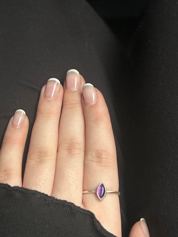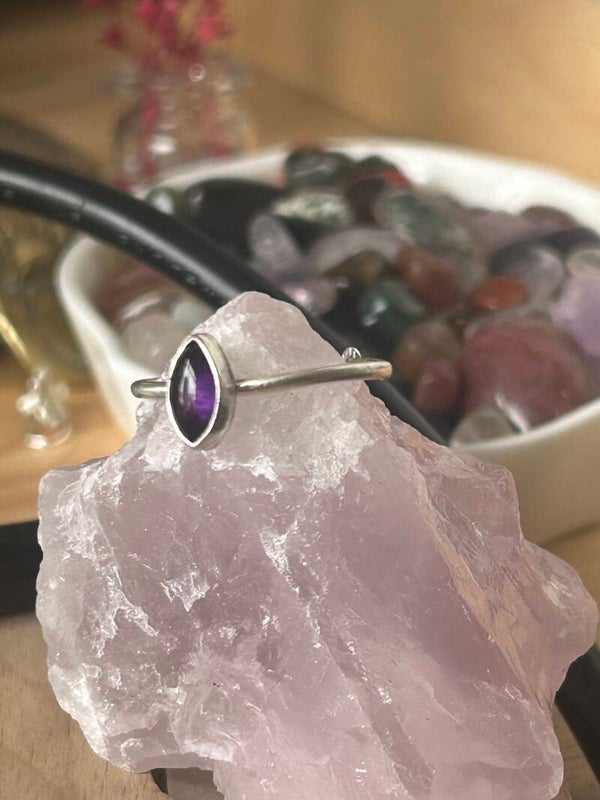 Sterling silver ring handmade with a marquise amethyst stone, adjustable.✨