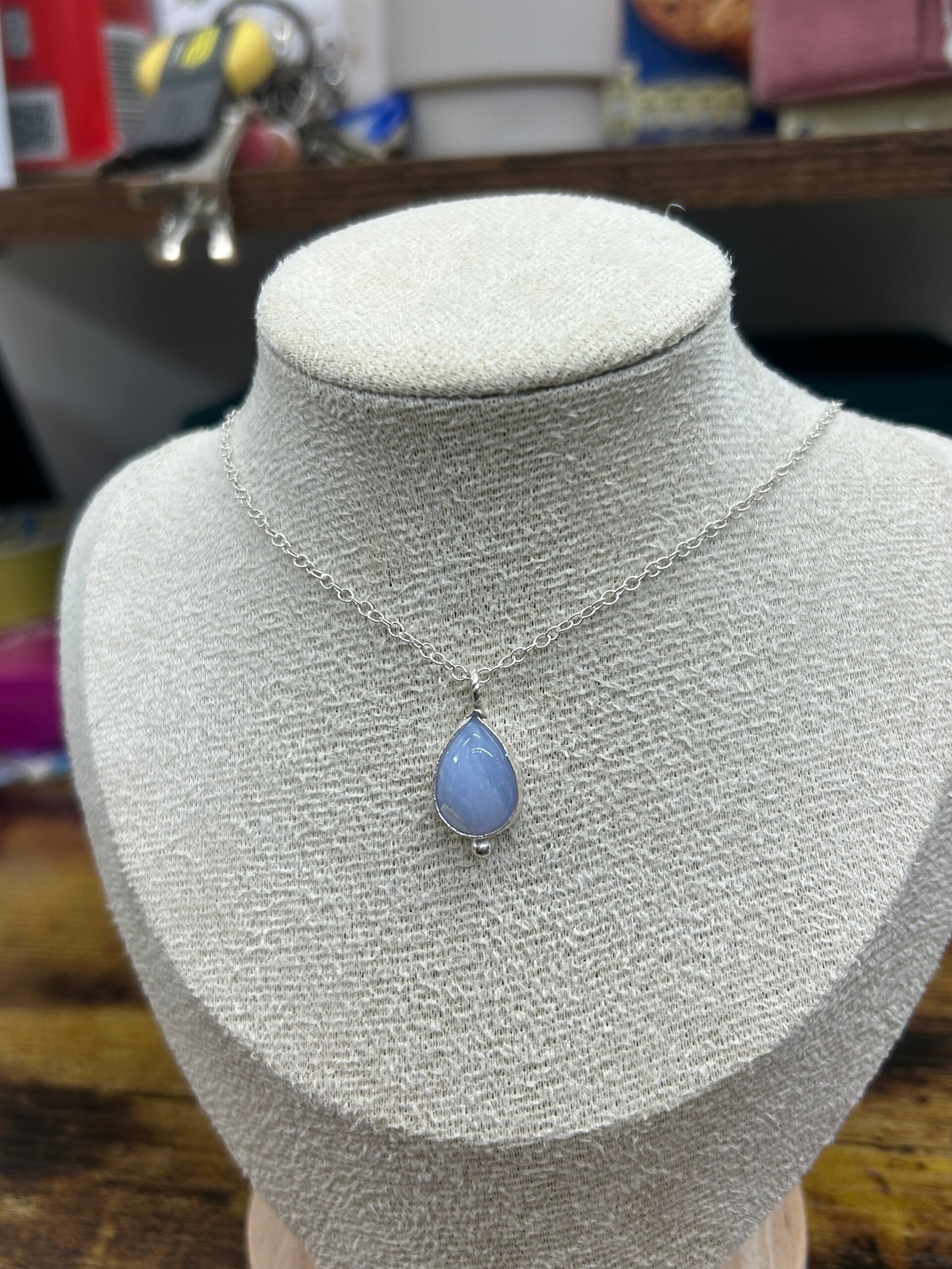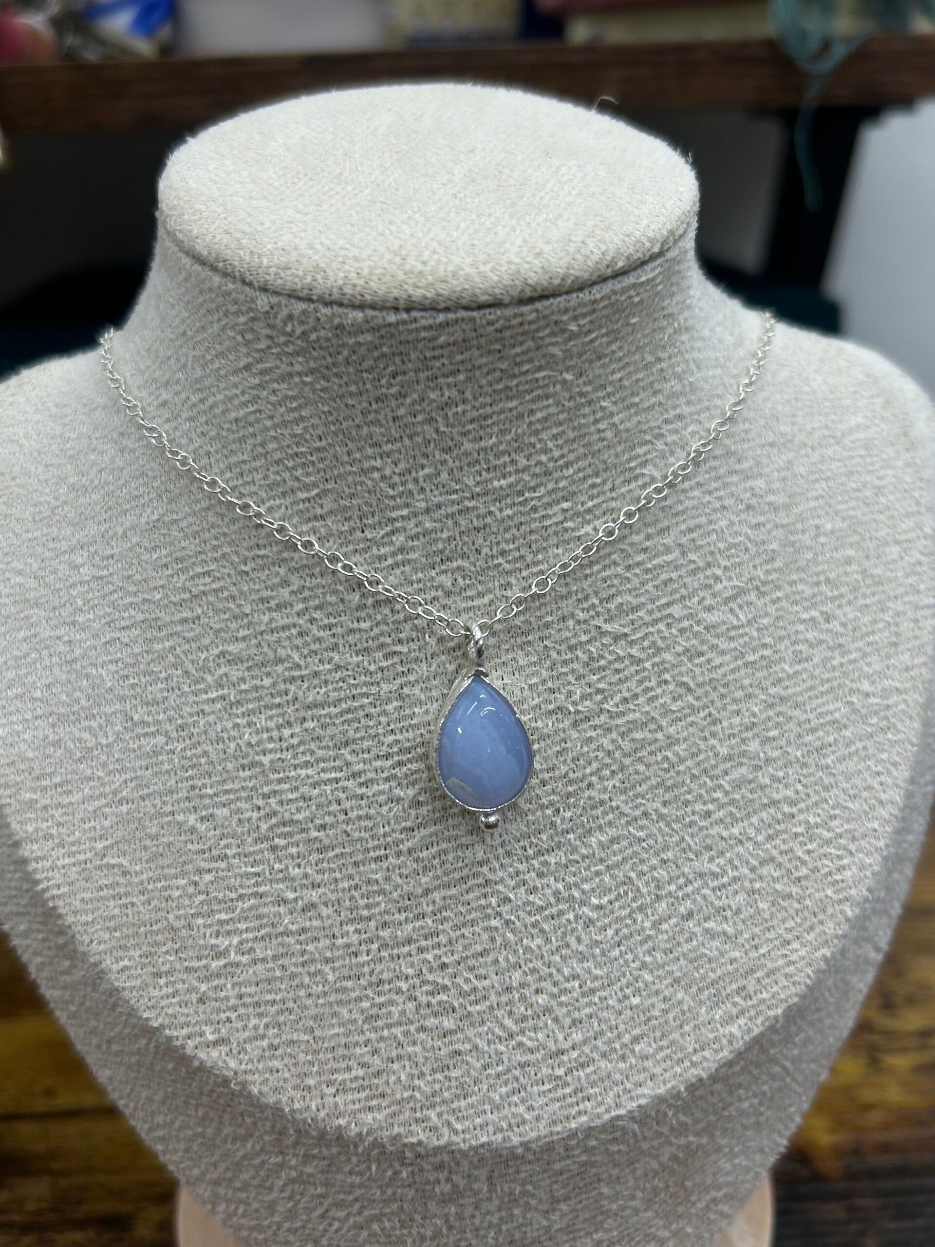 Handmade sterling silver necklace with a gorgeous blue lace agate stone and a sterling silver ball detailing✨💙