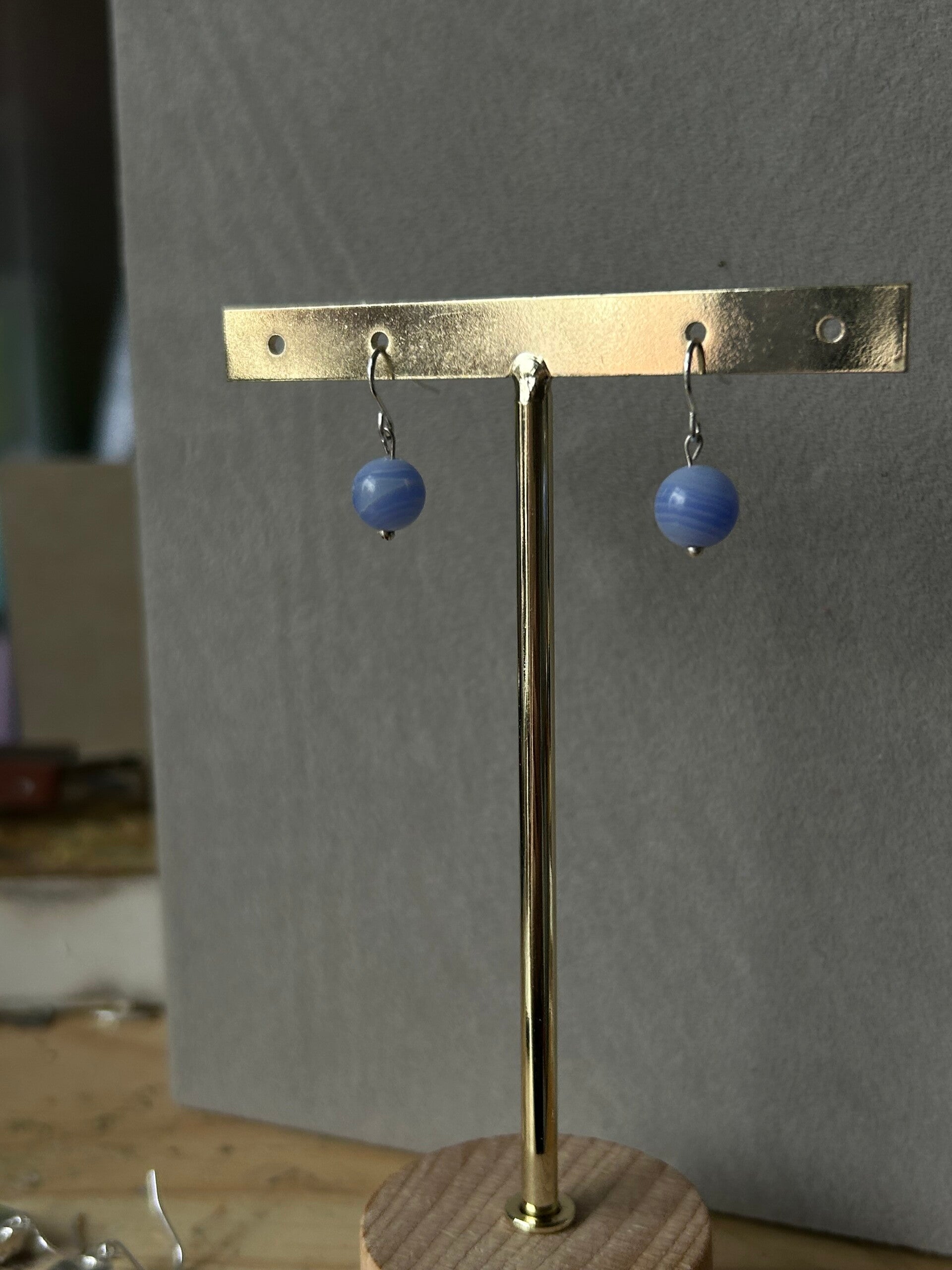 Handmade sterling silver blue lace agate earrings with sterling silver ball detailing✨💙