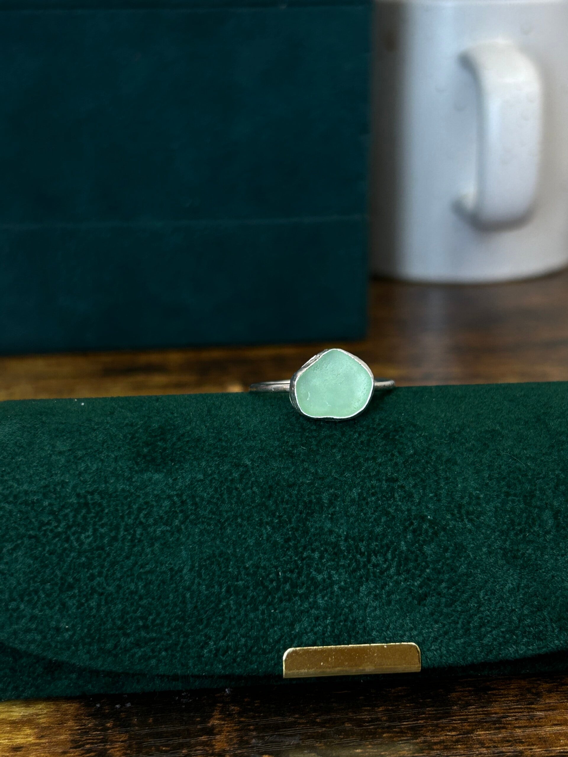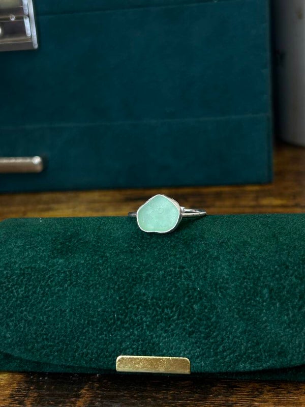 Handmade sterling silver ring made with a beautiful piece of green seaglass🌿✨