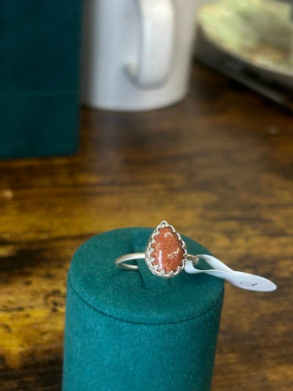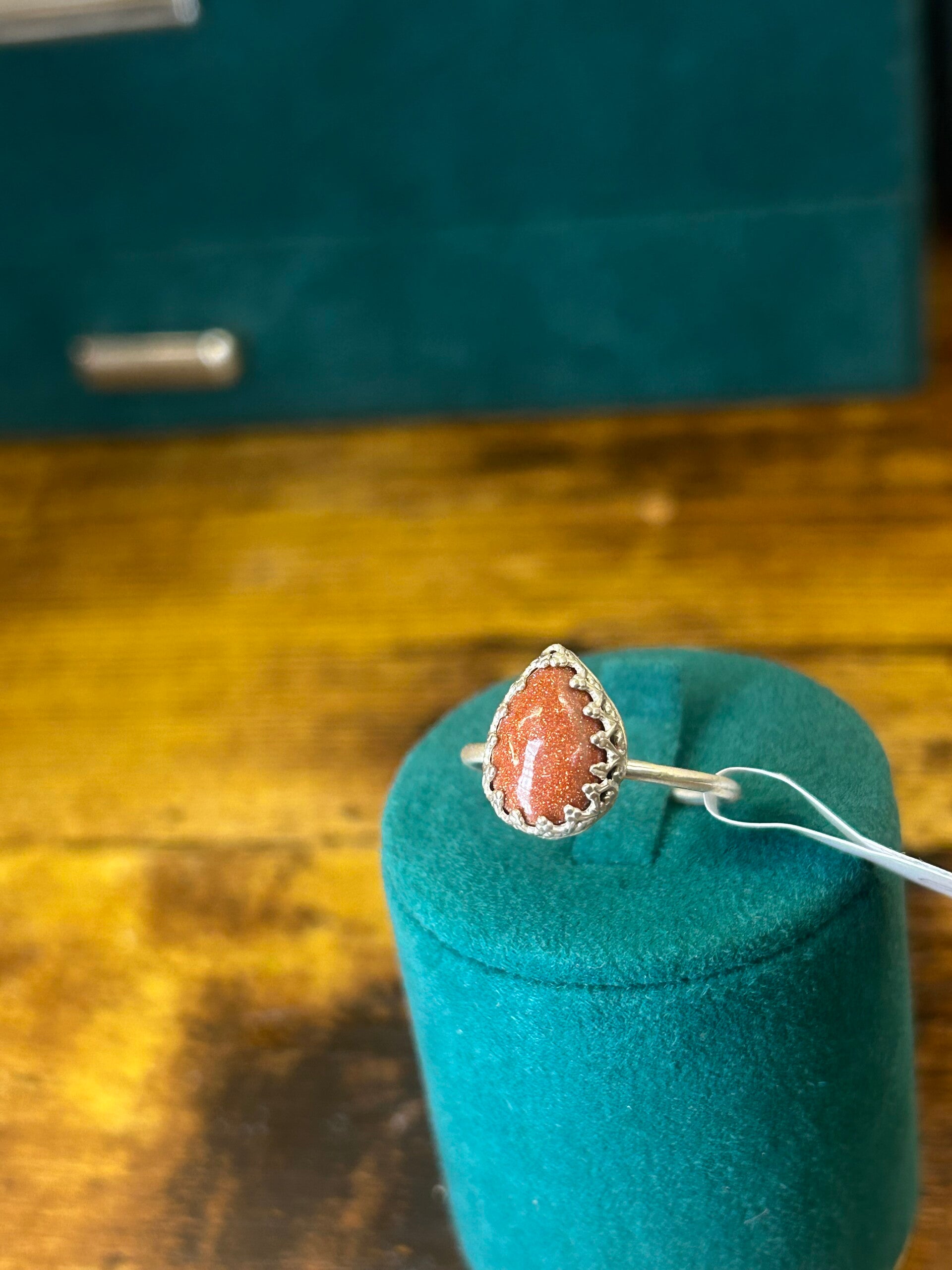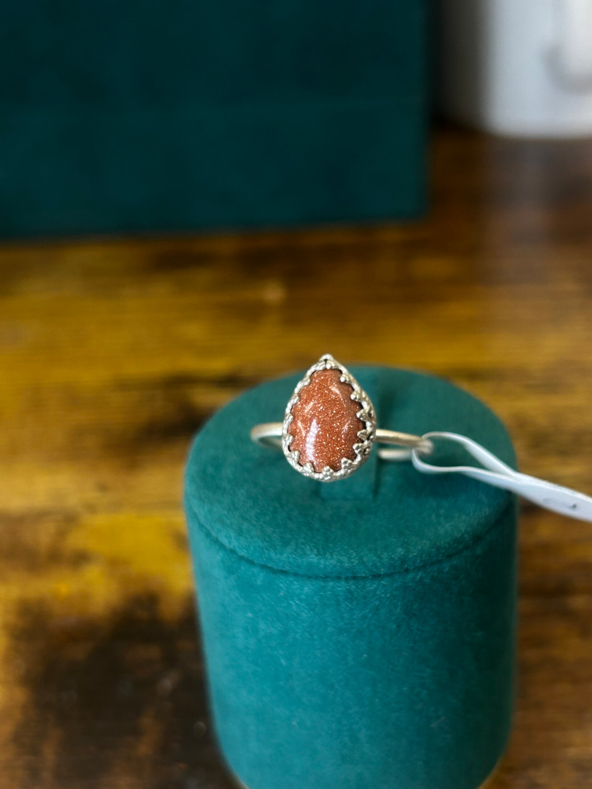 Handmade sterling ring made with gallery wire and a very sparkly goldstone✨🍂