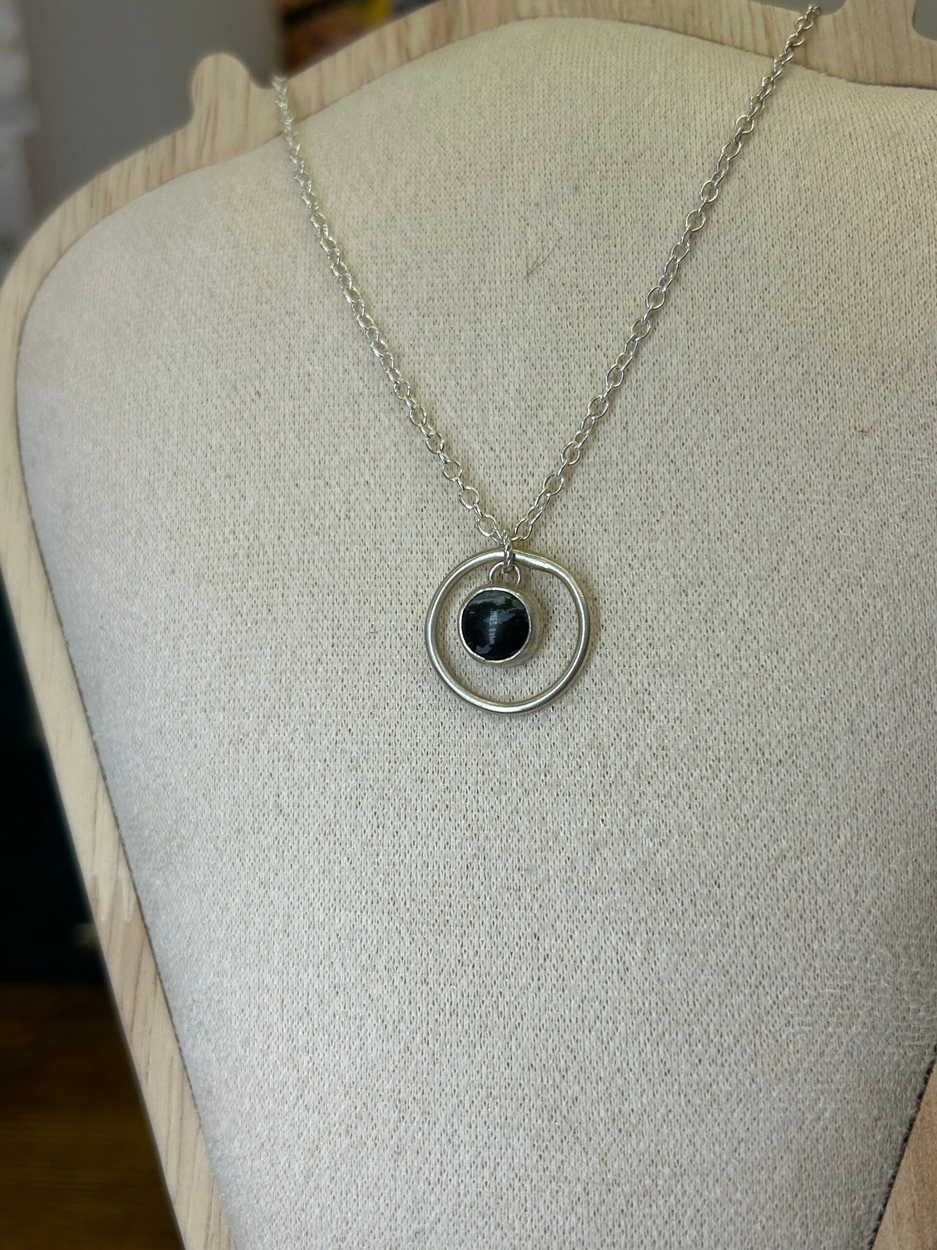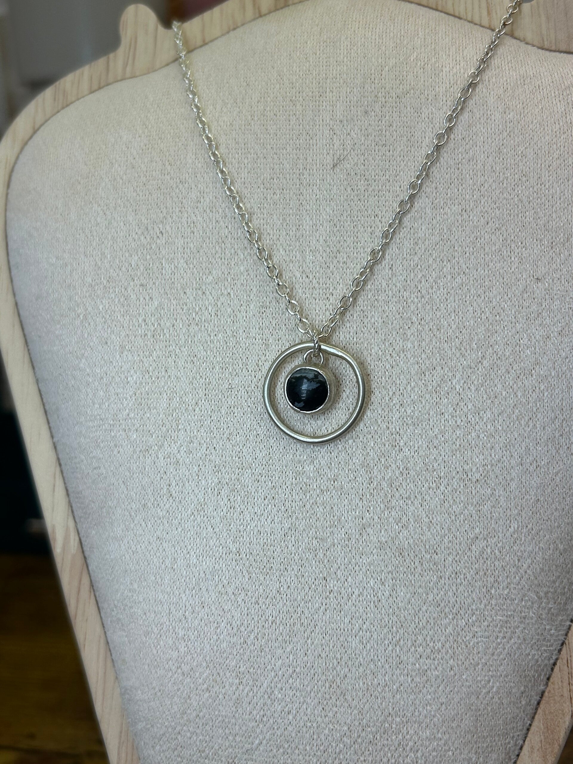 Handmade snowflake obsidian necklace with ring around the stone✨🔮