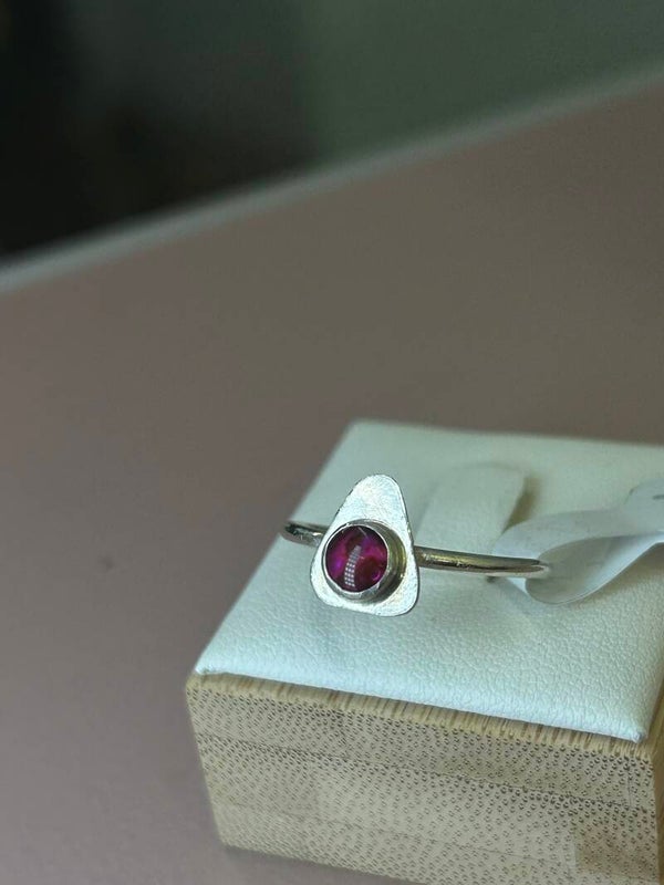 Handmade sterling silver ring with triangular silver sheet and a pink paua shell stone✨🌸
