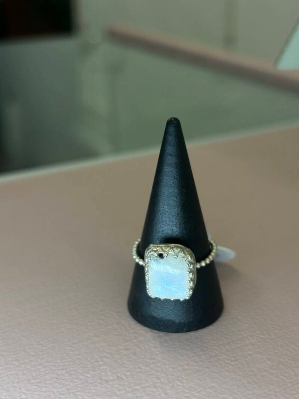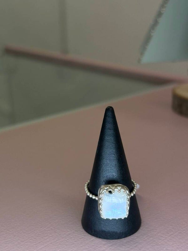 Handmade sterling silver ring made with beaded ring wire and a beautiful square shaped moonstone✨🌛