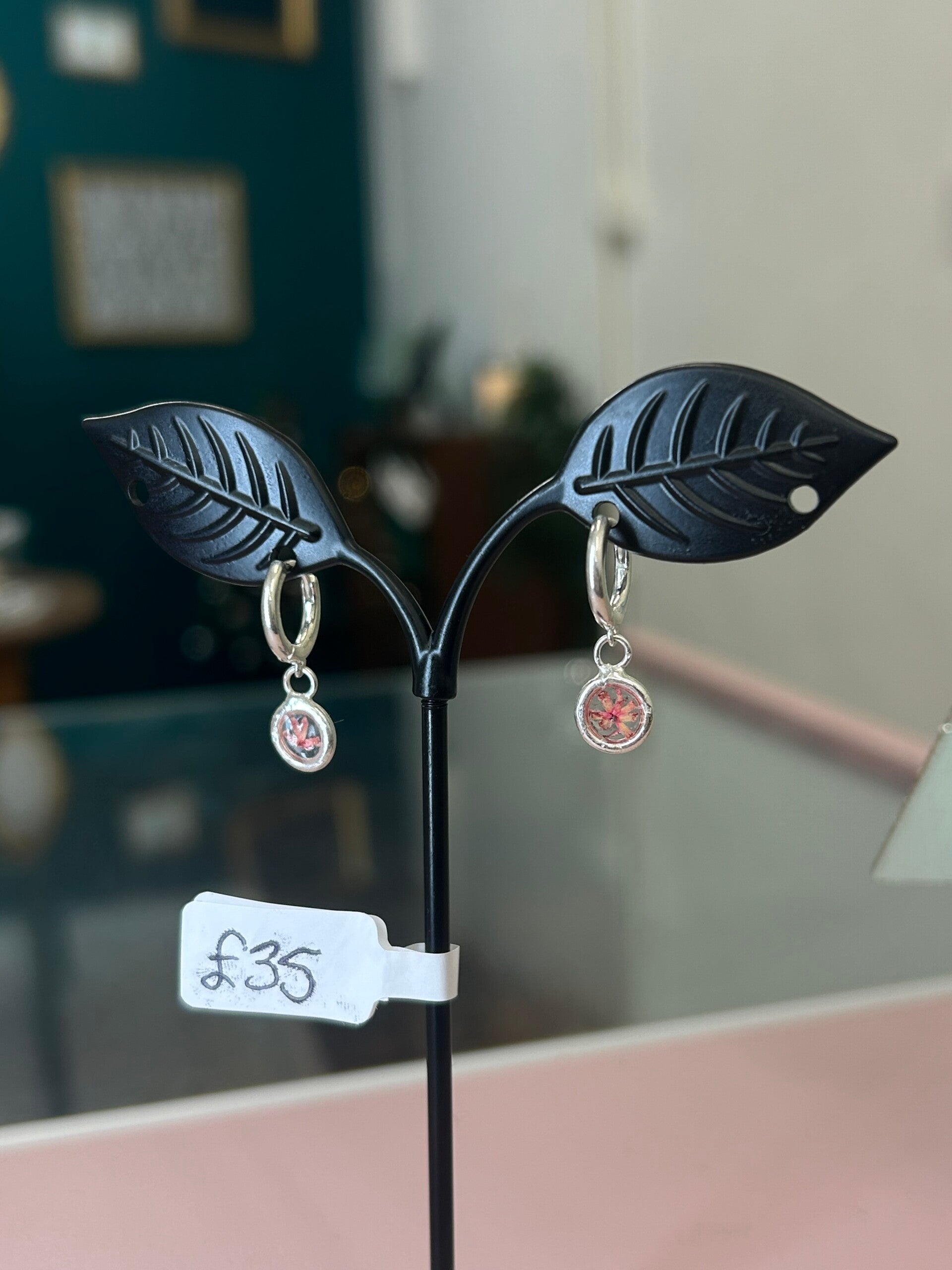 Handmade sterling silver hoop earrings made with pressed flowers and UV resin✨🌸