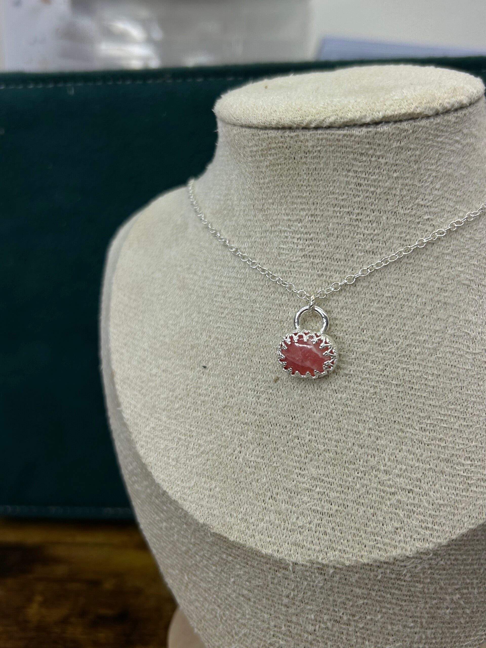 Handmade sterling silver necklace made with rhodonite and gallery wire✨🌸