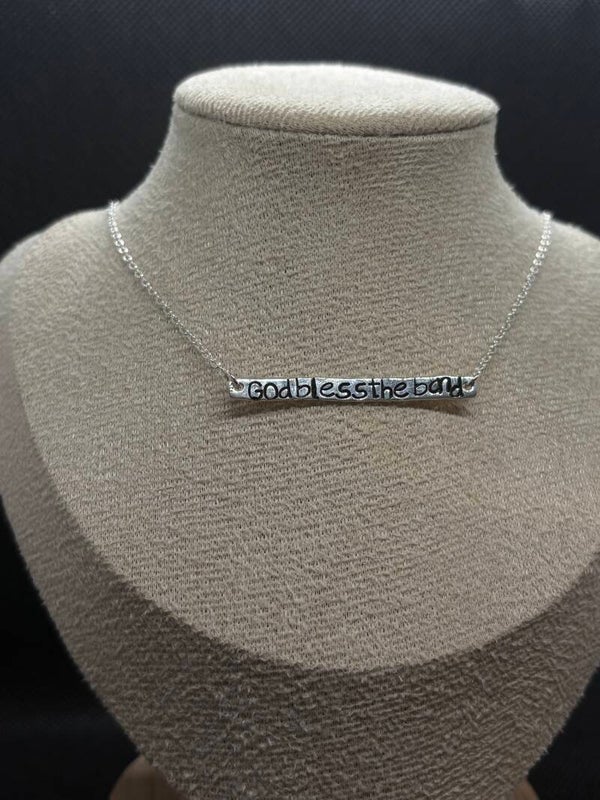Handmade sterling silver necklace on a 14" Chain hand stamped with god bless the band✨🥰