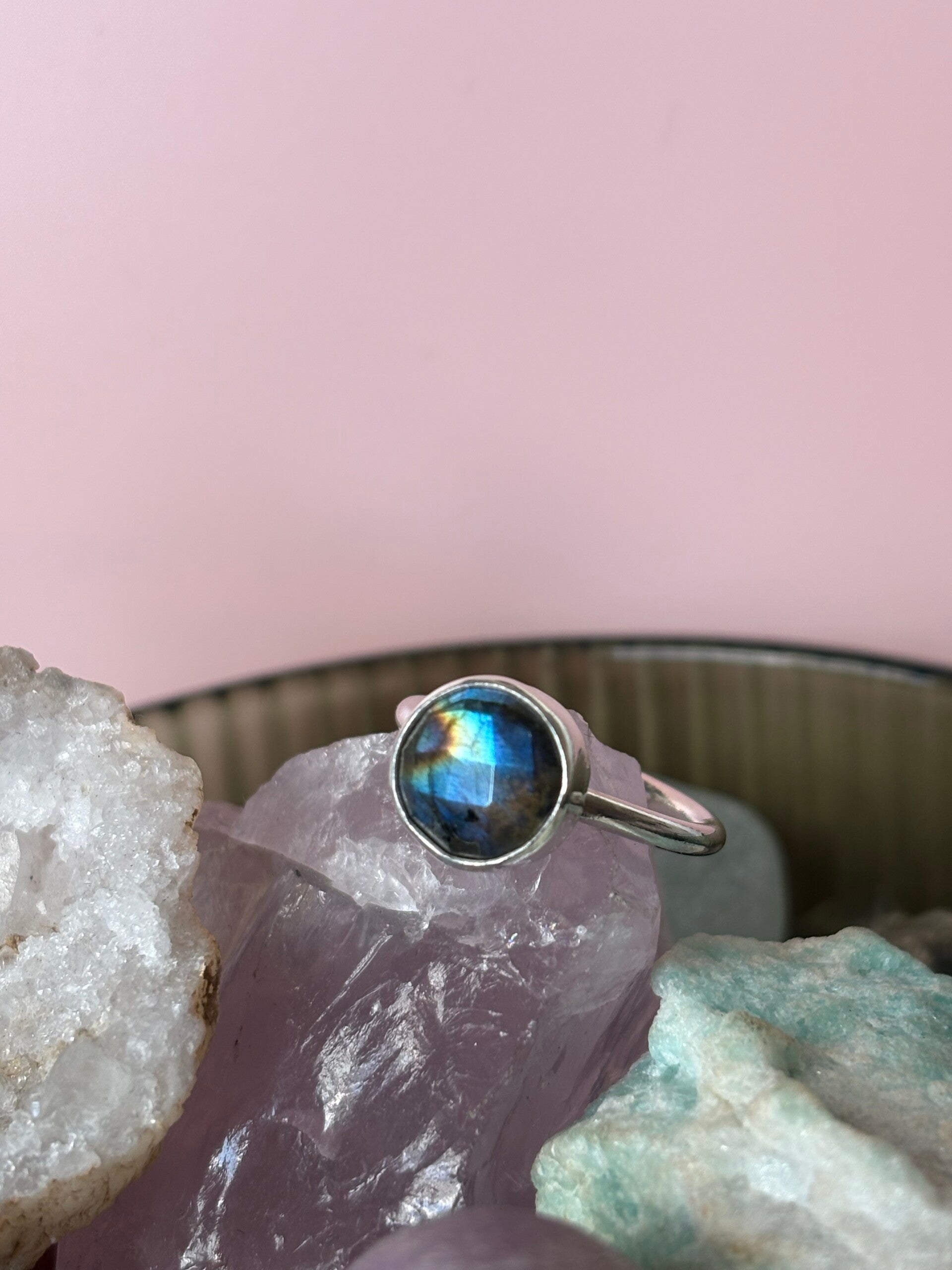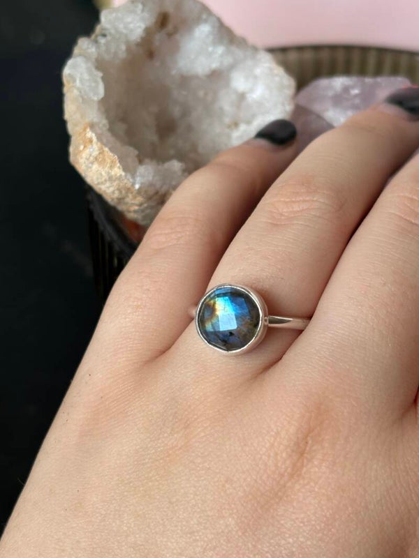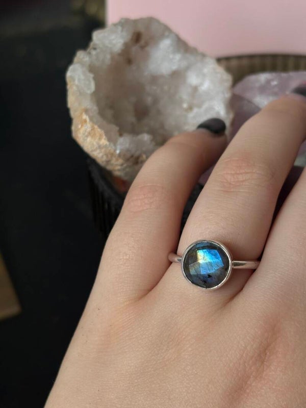 Handmade sterling silver ring with a gorgeous rose cut labradorite stone with beautiful flashes✨🔮Size P