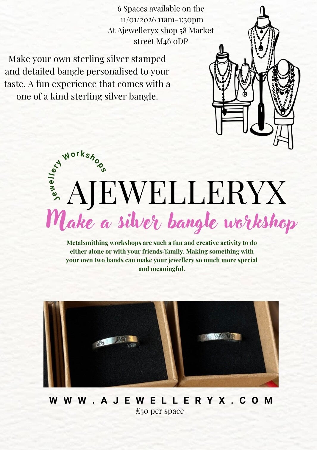 Come down to the Ajewelleryx shop and make your own sterling silver personalised bangle with metal stamps and detailing hammers, such a fun experience which you get to leave with a handmade bangle made by yourself🥰 Sunday the 11th of January 11am-1:30 pm