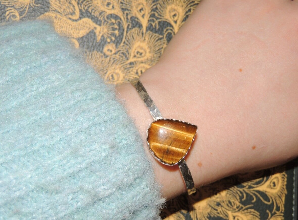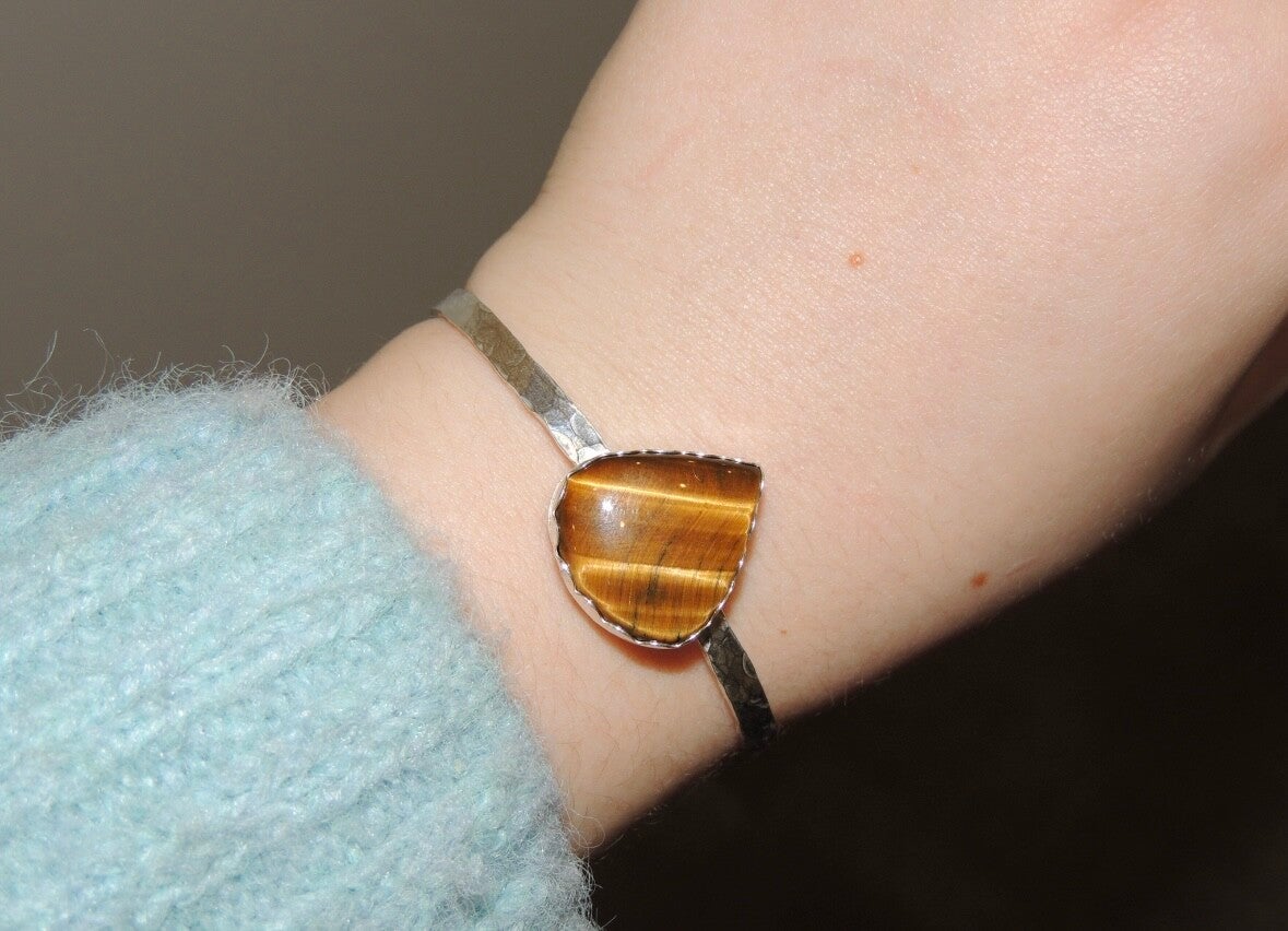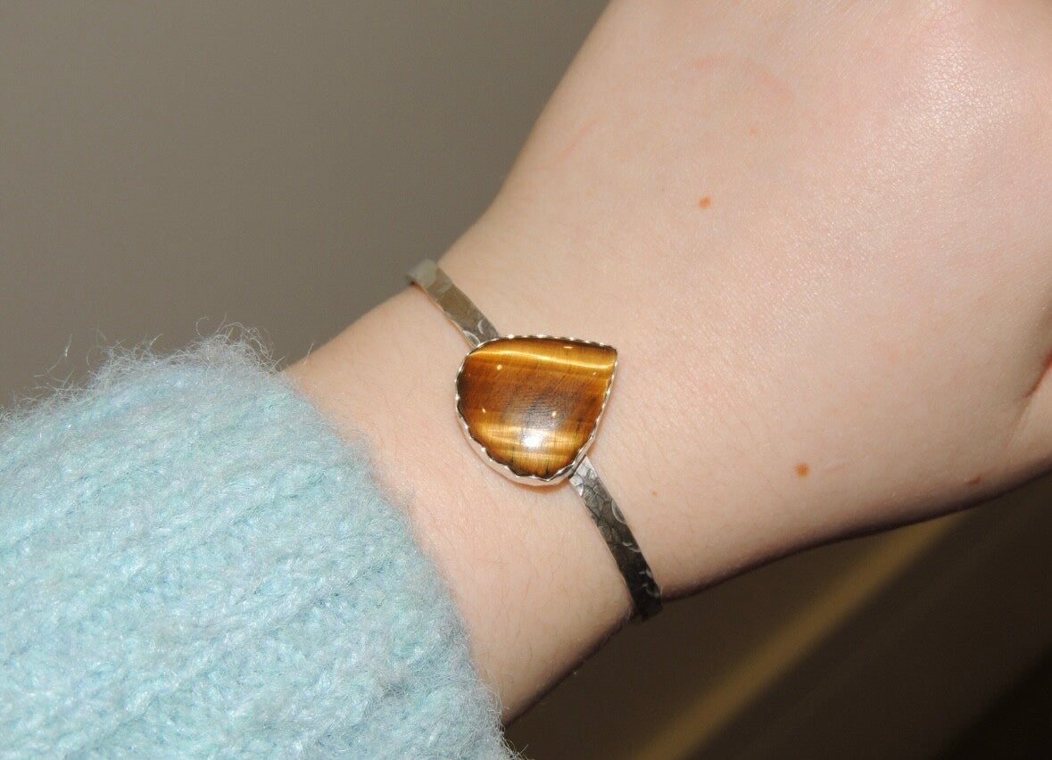 Handmade sterling silver cuff bangle made with a beautiful tigers eye stone✨👁️